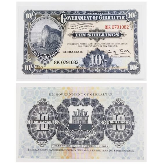 Gibraltar 50 Pence / 10 Shillings Banknote (World Tourism Year)