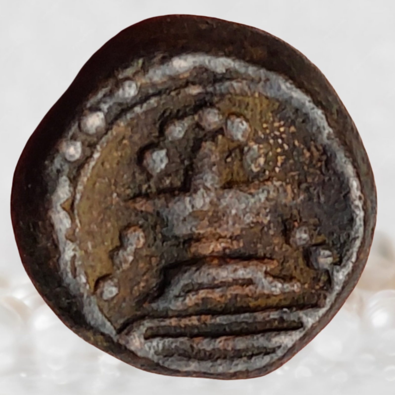 Shivaganga Rajas, South India, Ruler: Sivagangai Nayaks, Reign: Circa 1570–1600 CE, Denomination: 1 Kasu, Composition: Copper, Weight: 3.22 grams, Diameter: 12.14 mm, Reference: en.numista #67605, about very fine, scarce.