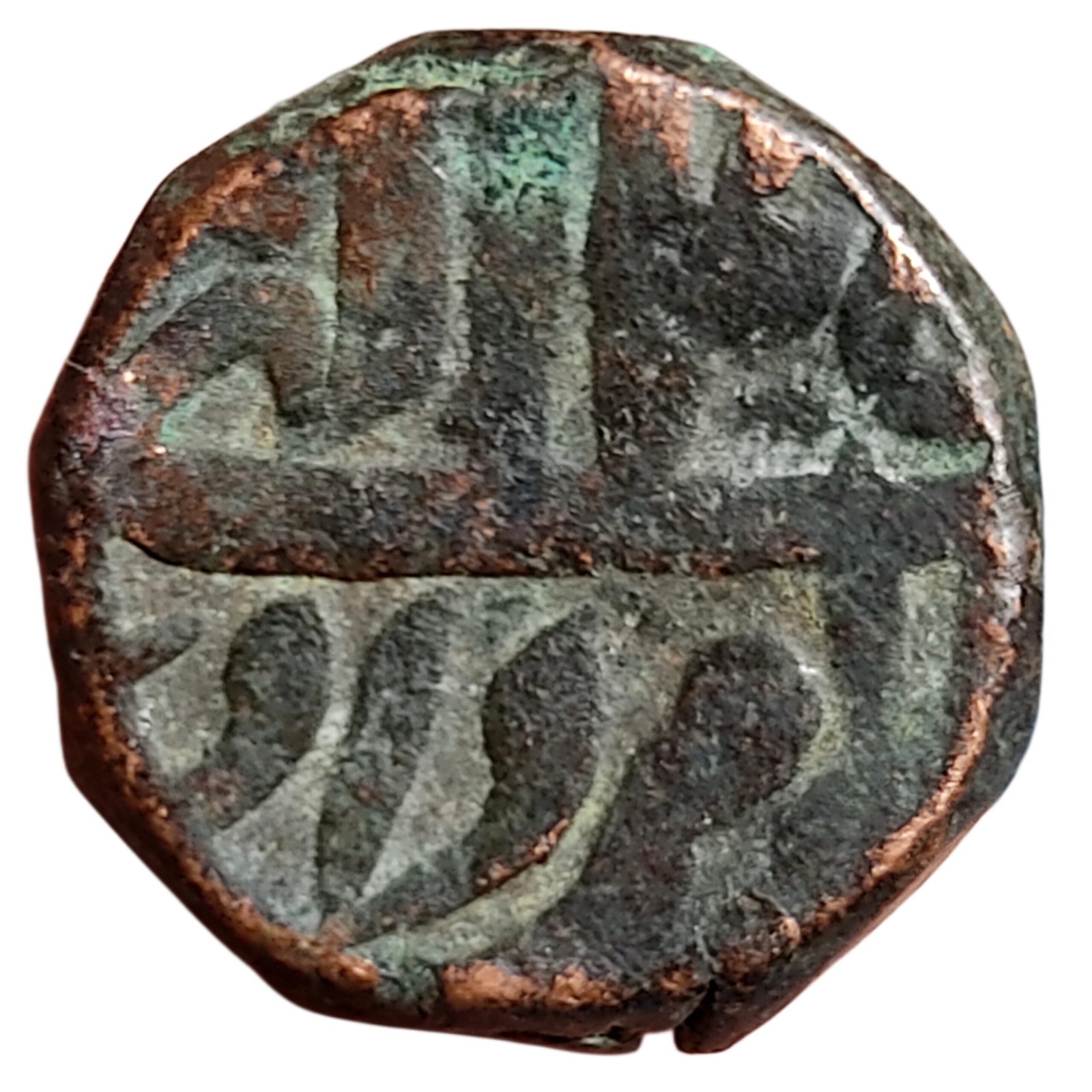 This extremely rare Chainpur Mint copper Dam (Falus) was issued during the reign of Mughal Emperor Jalal-ud-Din Muhammad Akbar, one of the greatest rulers of early modern India. Akbar (1556–1605 AD) consolidated the Mughal Empire through military expansion, administrative reforms, and a policy of religious tolerance. His introduction of the Ilahi calendar reflected his interest in astronomy, governance, and imperial unity.