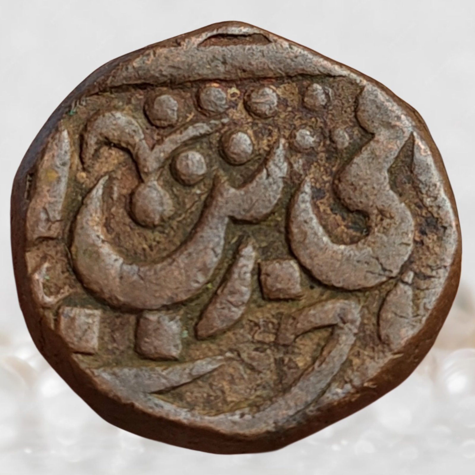 Princely State of Datia, Bhawani Singh, Period: AH 1231–1320 / 1816–1903 AD, Denomination: 1 Paisa, Metal: Copper, Weight: 12.51 grams, Diameter: 19.23 mm, Reference: KM #C23, Very Fine