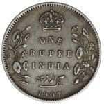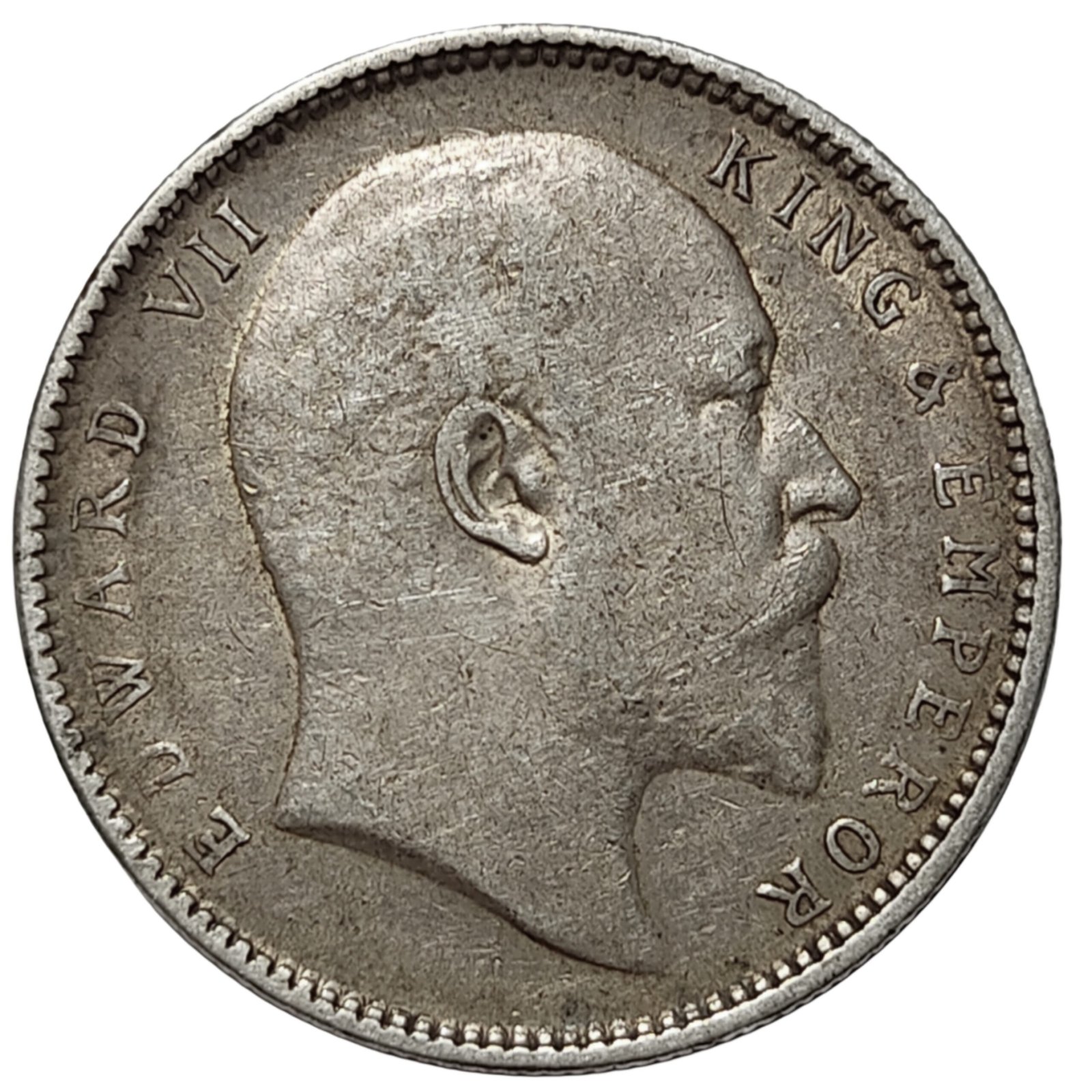 British India, King Edward VII (r. 1901-1910 CE), Denomination: 1 Rupee, Composition: Silver, Weight: Approximately 11.54 grams, Diameter: 30.6 mm, Reference: KM# 508, Very Fine, + Scarce,