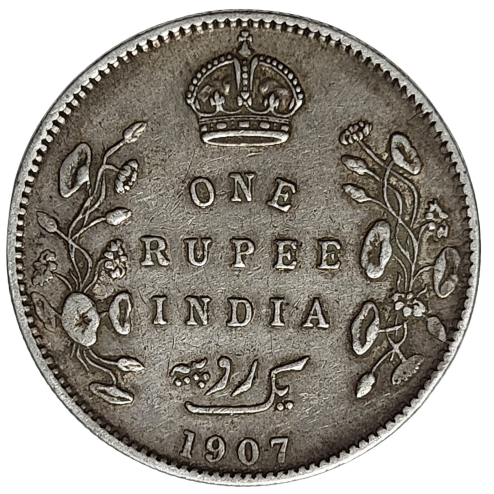 Edward VII King & Emperor One Rupee Silver Coin British India 1907 Collectible Grade