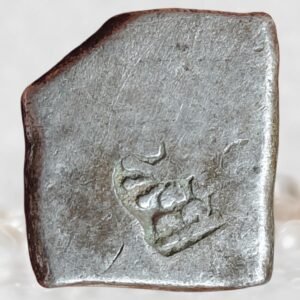 This coin belongs to the Post-Mauryan period, following the decline of the Mauryan Empire, when regional powers in Central Malwa—particularly around Eran and Vidisha—began issuing their own localized coinage. These issues continued the traditional punch-marked system but with less uniformity and more region-specific symbols. The Ujjaini symbol reflects the economic and cultural influence of Ujjain as a major trade center. The tree-in-railing and river with fishes are symbolic of fertility, nature worship, and early religious traditions linked to Hindu and possibly Buddhist practices. The triangular-headed standard is often interpreted as a dynastic or territorial emblem. Such fractional copper units were used for smaller, everyday tin local markets. The blank reverse is typical of these coins, emphasizing symbolic authority rather than inscribed legends.