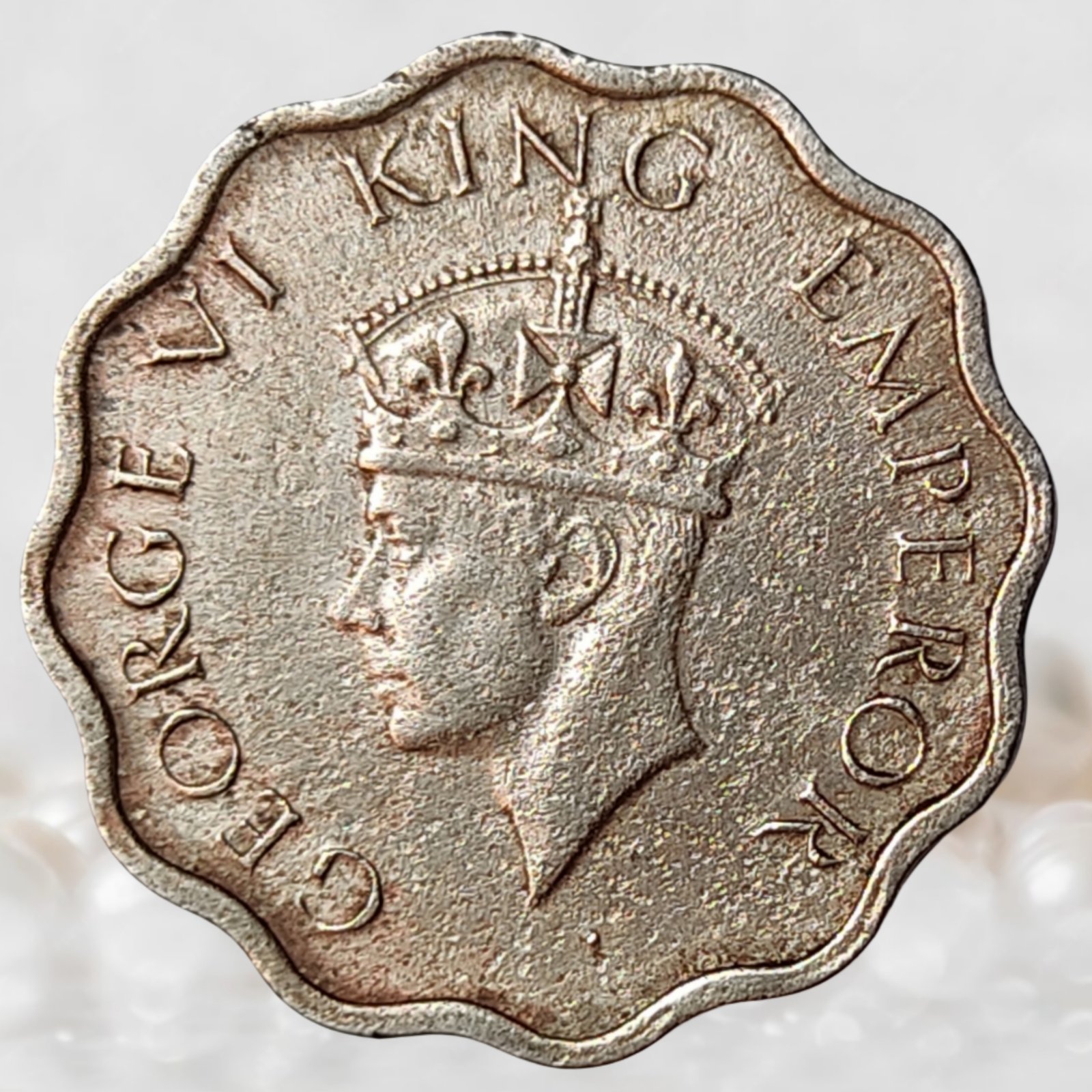 Tags: 1 Anna Coin, British India Coin, George VI British India Copper Nickel 1 Anna Coin, King George VI Coin