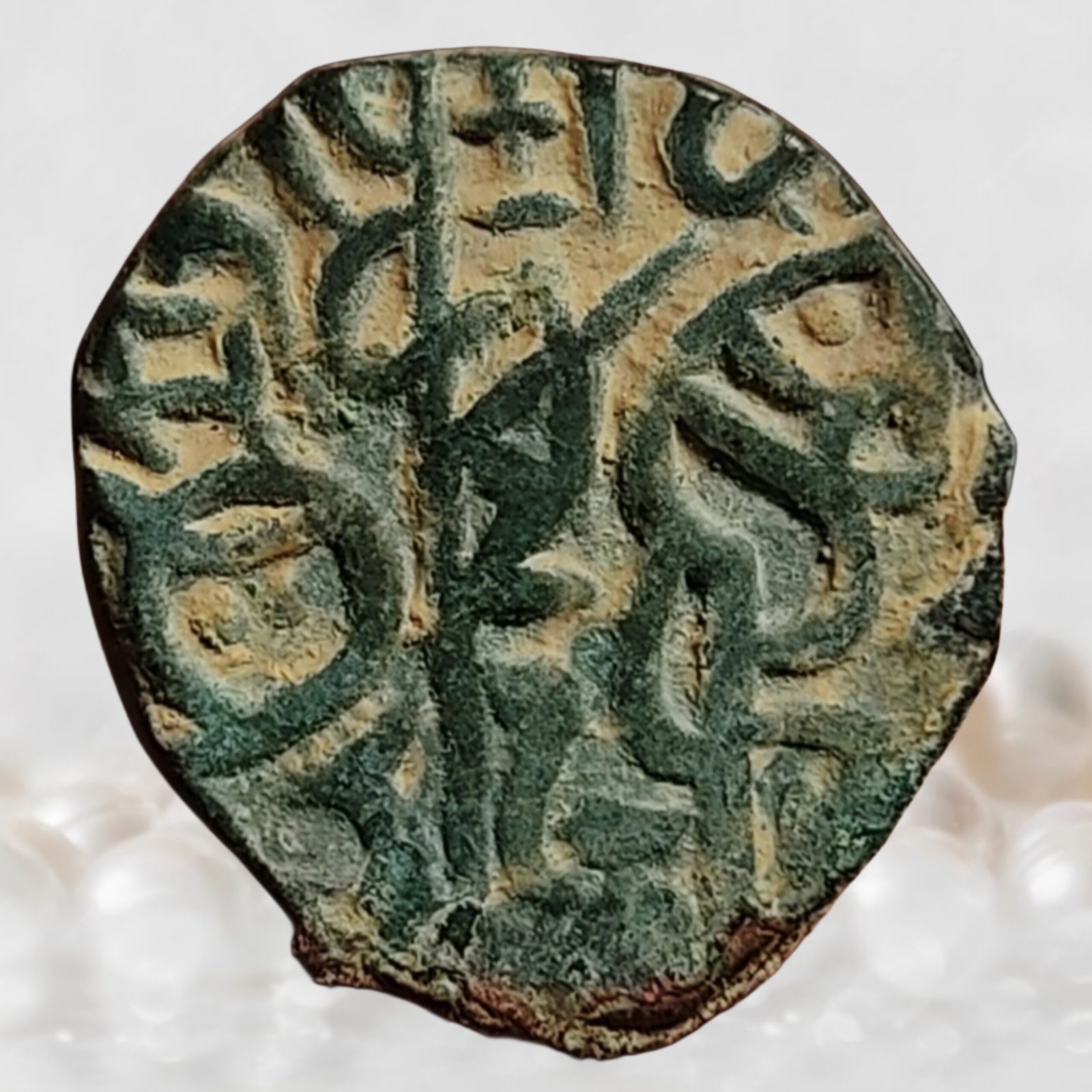 Sultan Jalal al-Din Mangubarni, the last great ruler of the Khwarazmian dynasty (1220–1231 CE), is remembered for his extraordinary resistance against the Mongol Empire after the fall of his father’s kingdom. Forced to flee Central Asia, he rebuilt his power in Persia and the Indian frontier. This billon jital, showing a bull on the obverse with the Nagari inscription “sa jalaladina” and a horseman on the reverse with “sri hamirah,” reflects his continued authority in regions influenced by Indian monetary traditions. Minted during years of constant warfare and migration, the coin represents a ruler who refused surrender, fought brilliant battles, and maintained his sovereignty despite overwhelming Mongol pressure, making his issues scarce and historically valuable.