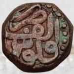 This copper Dam was struck during Emperor Akbar’s Sindh campaigns, when Mughal forces were operating on the empire’s western frontier. To ensure uninterrupted military logistics, Akbar introduced mobile mints known as “Urdu Zafar Qarin,” which travelled with the imperial camp. These temporary field mints produced coins on the spot for soldiers’ wages, supplies, and local transactions. The Alf (1000) inscription marks Akbar’s ideological and chronological reform linked to the completion of one thousand lunar years of Islam, symbolizing renewal and imperial authority. Unlike regular city issues, such camp-mint coins were produced rapidly and in limited numbers, prioritizing function over refinement. The substantial weight of 20.05 grams confirms it as a full-value Dam, intended for serious circulation. Today, this coin stands as a rare and tangible witness to Mughal wartime administration and Akbar’s innovative governance.