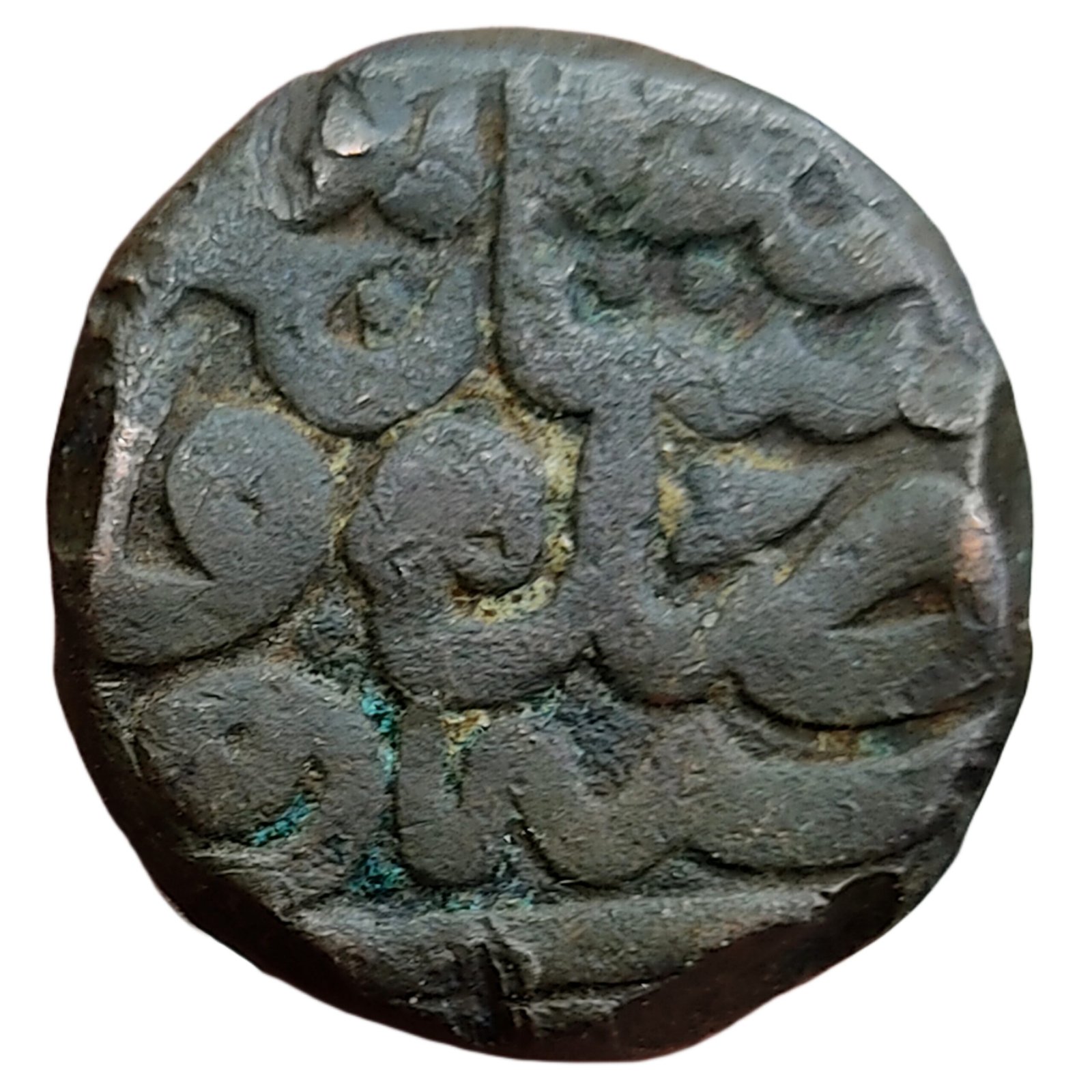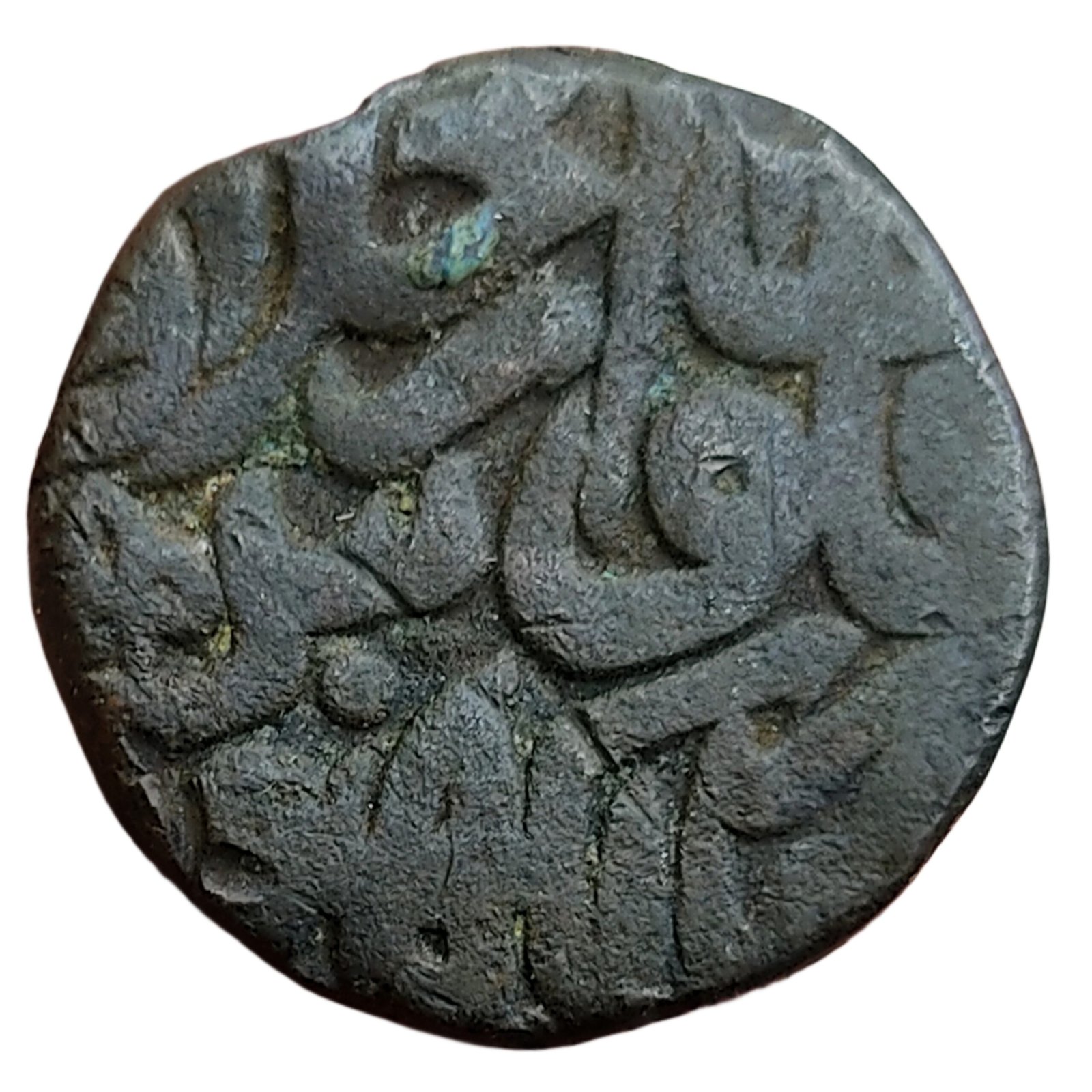 Under his rule, the Mughal coinage system reached new heights of uniformity and artistry. Akbar issued coins in gold, silver, and copper, including this copper dam struck at Dar-ul-Khilafa Lakhnau in AH 985 (1577 AD), reflecting both the political strength and refined aesthetics of his prosperous reign.