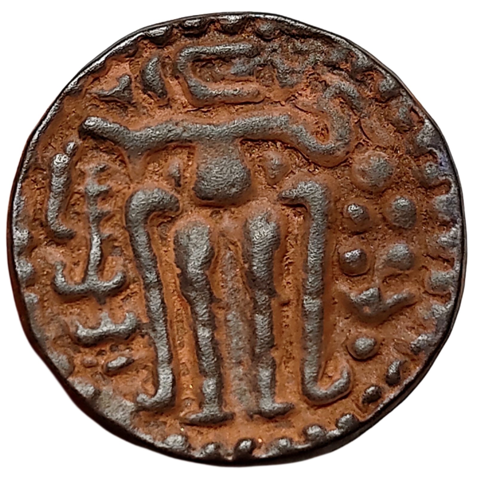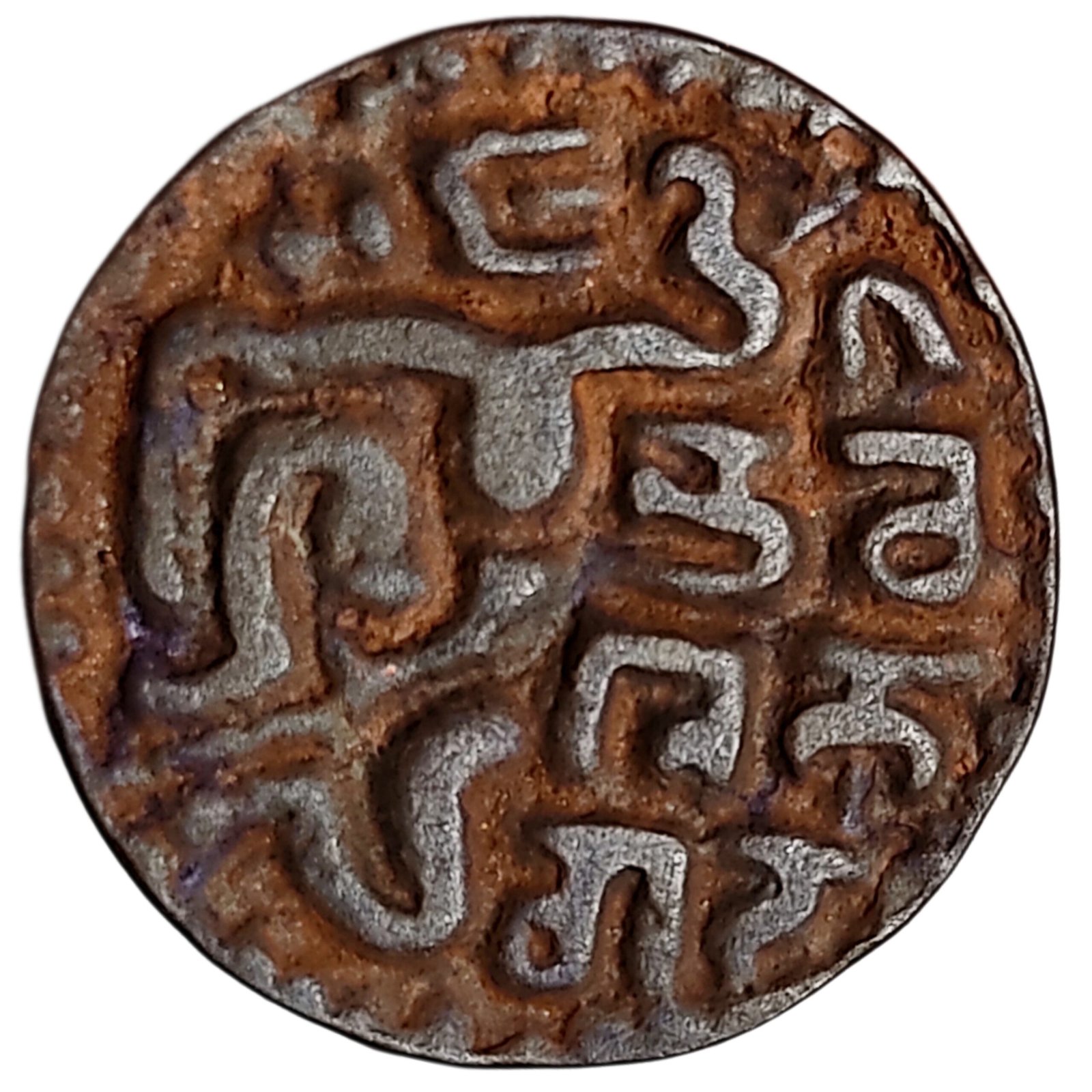 King Bhuvanaikabahu I, Dambadeniya Dynasty of Medieval Sri Lanka/South India, 1271 – 1285 CE, Denomination: AE Kahavanu or Massa, Composition: Copper, Weight: 3.55 grams, Diameter: 19.02 mm, Reference: Mitchner #850-2, About Very Fine, + Extremely Rare.