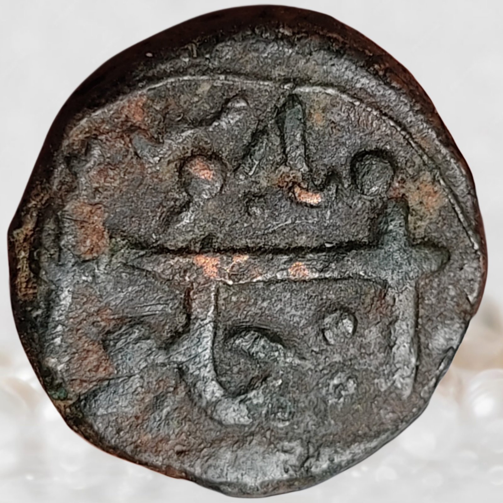 Kingdom of Mysore, Haider Ali, AH 1174–1197 / 1761–1782 CE, Denomination: 1 Paisa, Metal: Copper, Mint: Haidarnagar (formerly Bednur), Weight: 12.92 grams, Diameter: 20 mm, Grade: Fine + Natural patina, Extremely Rare & Unlisted.