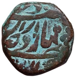 Reverse: Inscription in Persian/Arabic: “ضرب فال سری نگر” — “Zarb Falus Srinagar” (Falus struck at Srinagar),