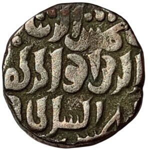 Malwa Sultanate under Mahmud Shah I reached a high point of political stability and cultural growth during the mid-15th century. Mahmud Shah I, founder of the Khalji dynasty in Malwa, ruled from Mandu and consolidated control over central India after breaking from the weakening Delhi Sultanate. His reign is remembered for strong administration, military discipline, and patronage of architecture, learning, and Islamic institutions. Mandu emerged as a major political and cultural center, marked by monumental buildings and fortified defenses. The billon jital coinage of Mahmud Shah I reflects this consolidation of authority. Bearing clear Arabic honorific titles on the obverse and the ruler’s name on the reverse, these coins symbolized legitimacy, sovereignty, and standardized monetary control in Malwa’s regional economy.