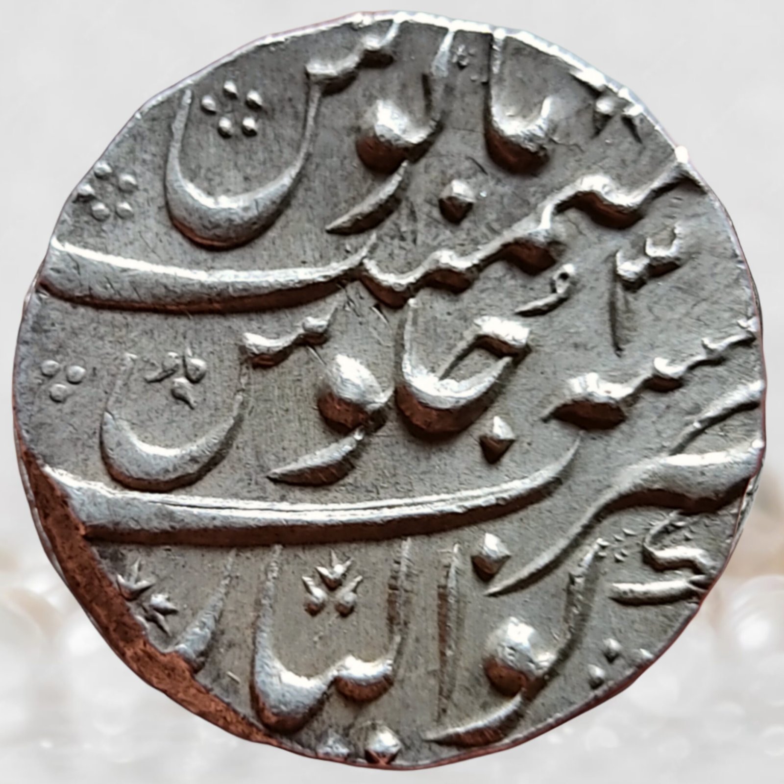 Muhammad Shah ruled the Mughal Empire during a period of sharp political decline and cultural refinement. Ascending the throne in AH 1131 / 1719 CE, his long reign witnessed weakening central authority, rising influence of nobles, and increasing pressure from regional powers like the Marathas. Despite political instability, Muhammad Shah—popularly known as Rangeela—was a great patron of art, music, poetry, and architecture, making his court a center of Indo-Persian culture. Gwalior held strategic importance under Muhammad Shah due to its strong fort and position on major trade and military routes of Central India. The Mughal control over Gwalior symbolized imperial authority in the region, though it often remained contested by local chiefs and Maratha forces. Coins struck at the Gwalior mint, especially with clear mint names, reflect the Mughal effort to assert sovereignty and administrative continuity during an era of fragmentation.