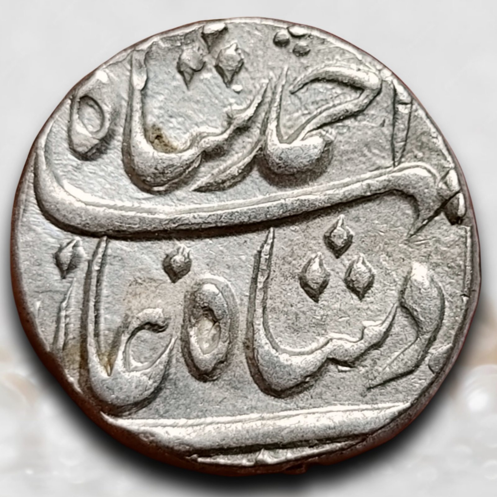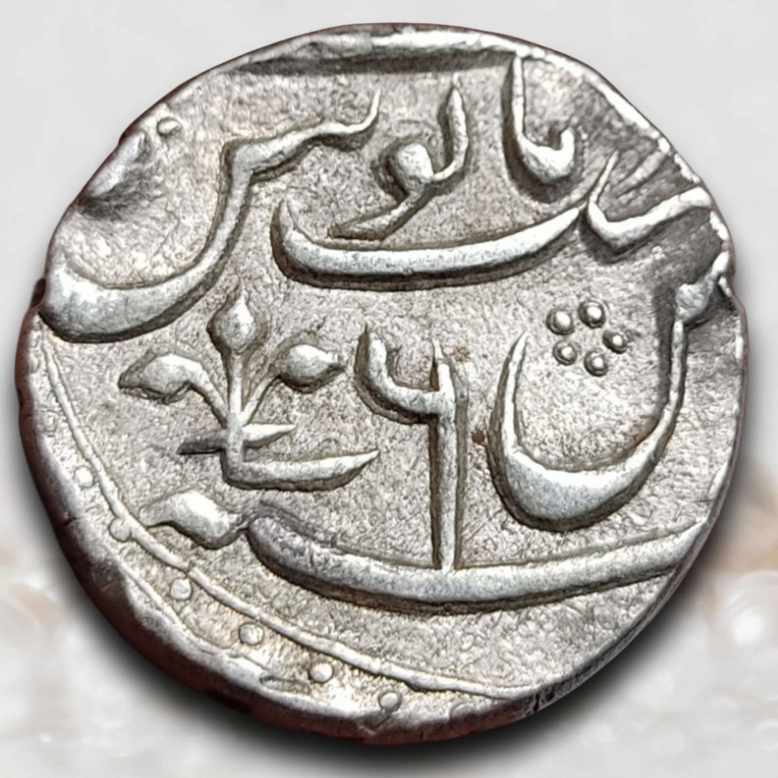 This rupee was struck at Azimabad (Patna) during the governorship of Nawab Alivardi Khan of Bengal, Bihar & Orissa. Though the coin bears the name of Mughal emperor Ahmad Shah Bahadur, real political and fiscal authority rested with Alivardi Khan, who maintained firm administrative and military control over Patna even during Maratha pressures. Patna functioned as the key revenue, trade, and minting center of the Bengal Nawabate, making Azimabad issues among the most historically significant eastern Mughal silver series.
