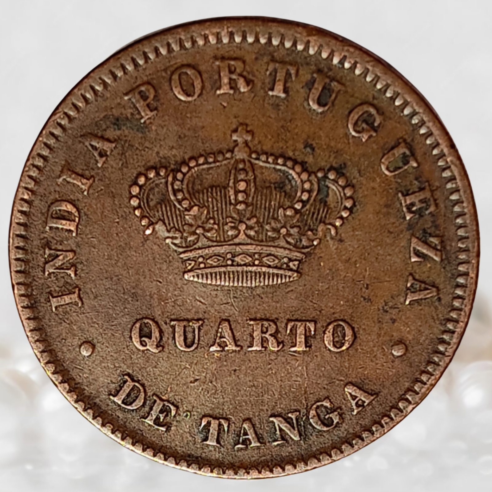 Tags: Portuguese India 1/4 Tanga - King Luis I Copper Coin, Portuguese India Copper Coin