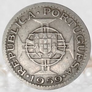 The 1 Escudo coin of Portuguese India belongs to the final phase of Portuguese colonial rule in India, issued during 1958–1959 under the Estado da India administration. Struck in nickel brass, it was part of the decimal escudo currency system introduced in Portuguese territories. The obverse reflects the colonial identity with “Estado da India,” while the reverse represents Portuguese sovereignty under the republican government. These coins circulated briefly before the annexation of Goa by India in 1961, after which Portuguese coinage lost relevance. The coin was officially demonetized in 1962, marking the end of Portuguese monetary presence in India. Today, it is collected as a historically important colonial-era coin from Goa and Portuguese India.
