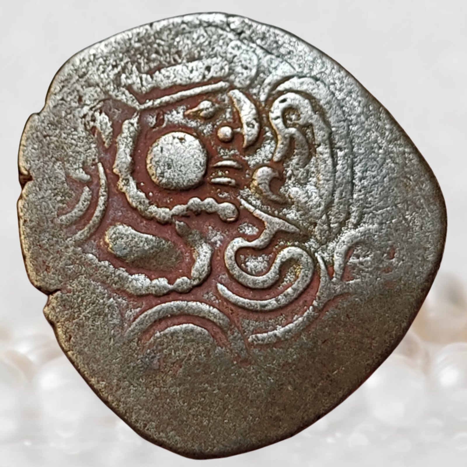This silver Indo-Sasanian drachm belongs to a widely circulated coinage tradition that developed in western and northern India. The design was originally inspired by the coinage of the Sasanian Empire of Persia, but over time the imagery became increasingly stylized. The obverse typically shows a simplified bust of the ruler, while the reverse represents a symbolic fire-altar motif.