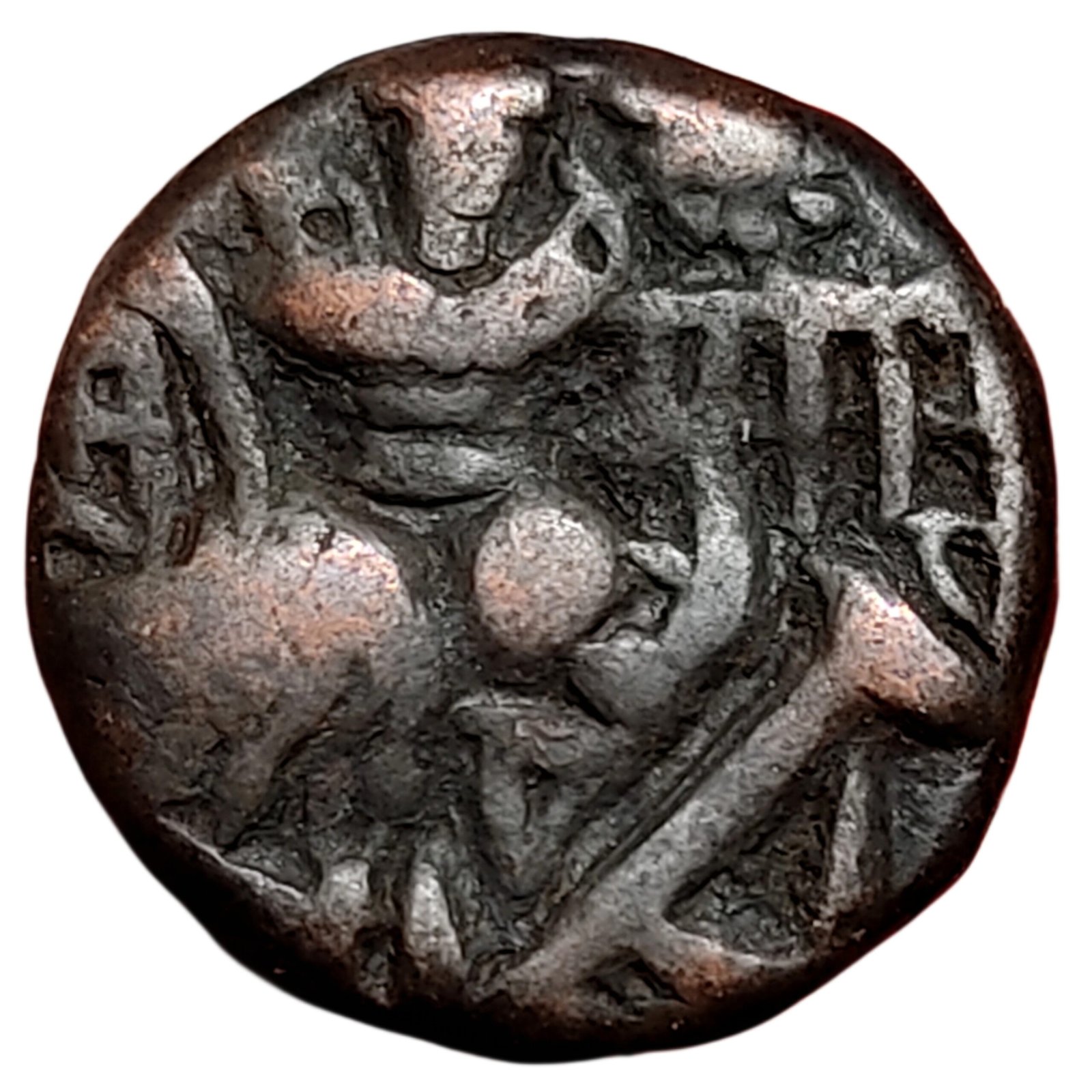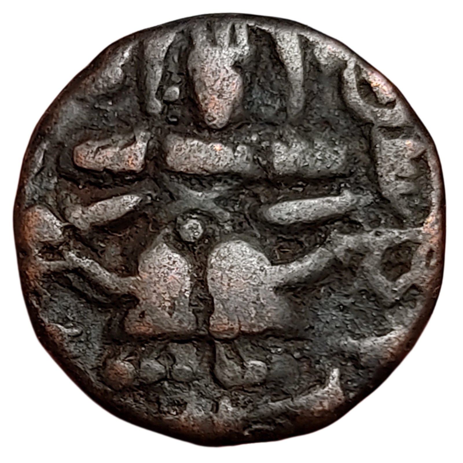 Sugandha Rani, Post-Hunnic dynasties of Kashmir (Indian Northern Dynasties) Years: 904-906 CE, Value 1 Stater, Composition Bronze, Weight 6.46 grams, Diameter 18 mm, Reference Number. N#297522, About Very Fine, + Scarce.