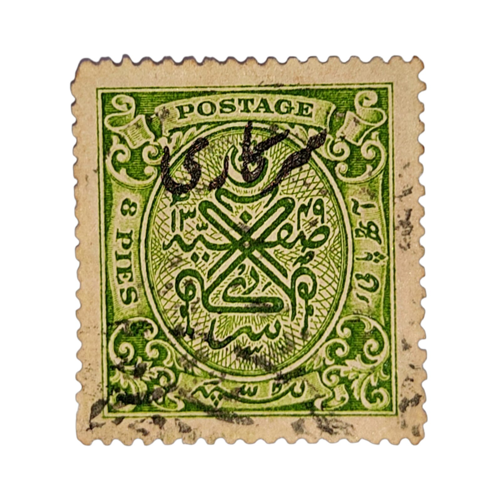 This Vintage Postage Stamp Indian Princely State Hyderabad 8 Pies – Eight Pies Green Color Postage Stamp