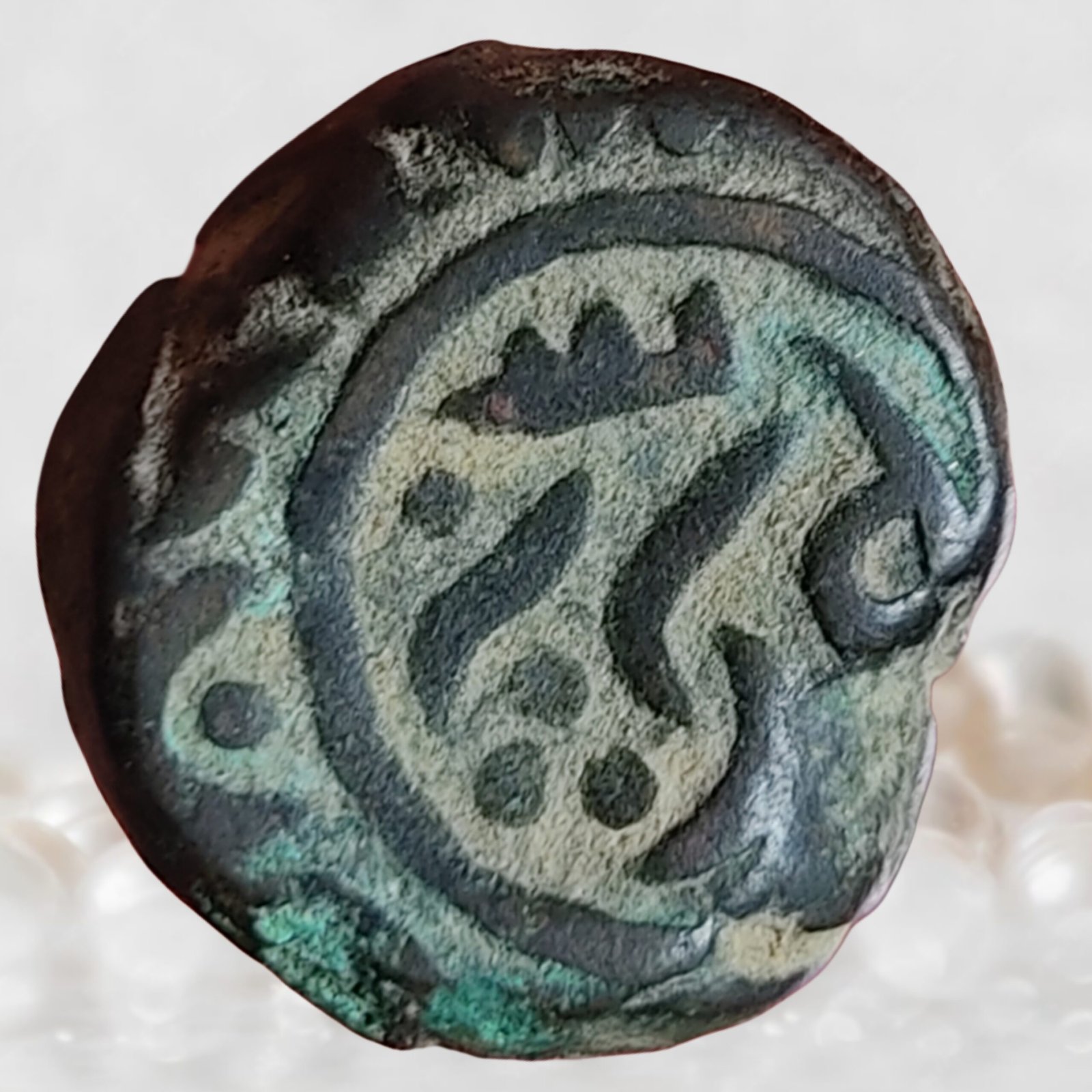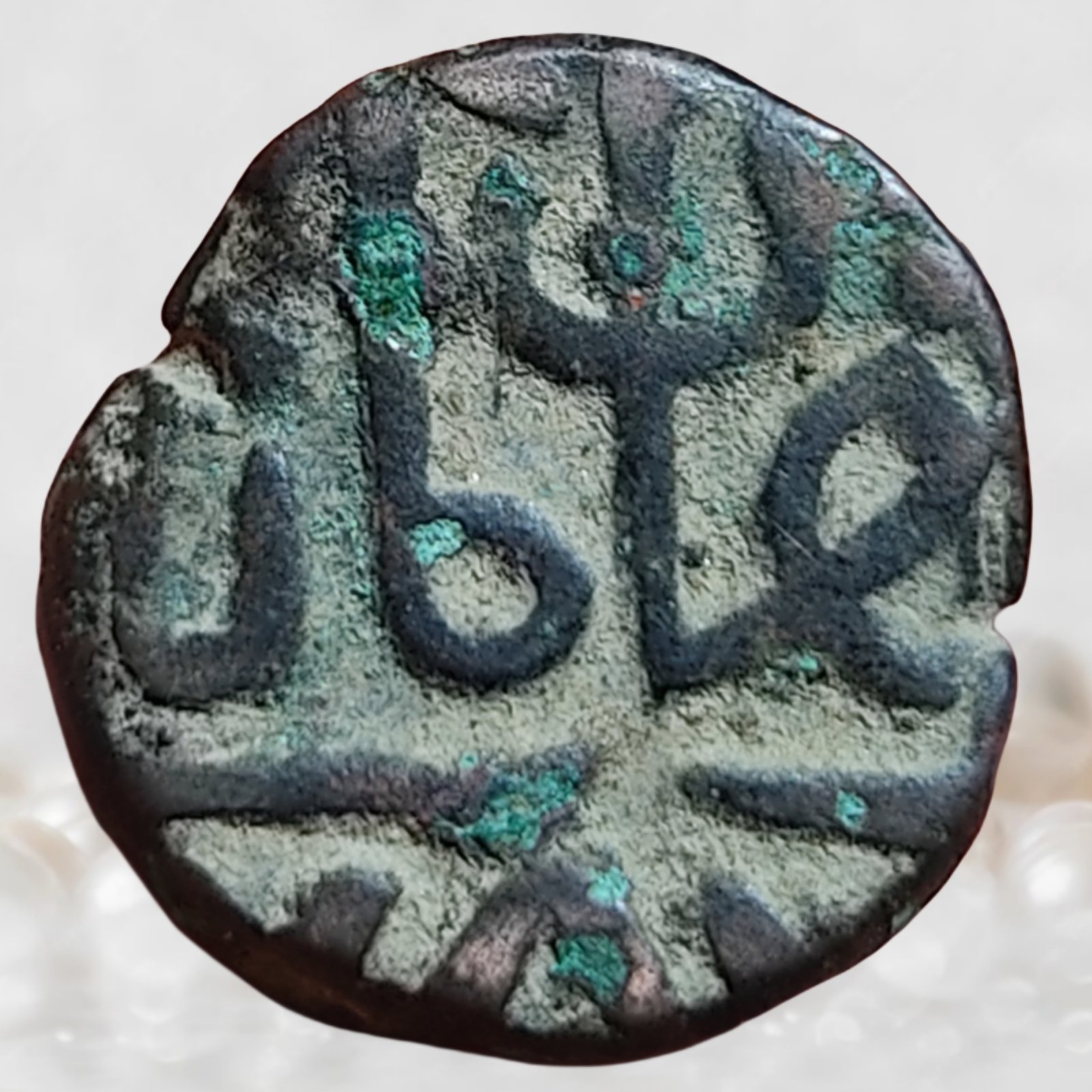 This copper Falus belongs to a long and important monetary series from late medieval Central India, representing progressively debased billon and copper tankas, falus, and their fractions. Typologically, these issues show clear continuity with the coinage of the late Delhi Sultans, particularly the Sayyad and Lodi dynasties, reflecting the lingering monetary influence of Delhi in regional polities. The legends are extremely crude and often illegible; however, in some examples faint traces of recognizable words appear. Certain elements are thought to correspond with names or terms found in the genealogical tradition of the Tomars of Gwalior, leading scholars to tentatively attribute this series to the Tomar rulers. These coins are historically significant as transitional issues, illustrating both political assertion by regional powers and the gradual decline in minting standards during the period.