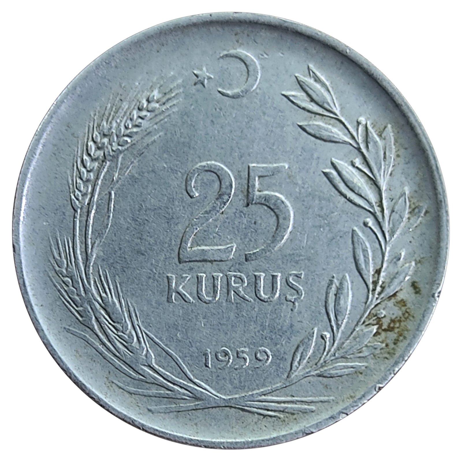 Turkey 25 Kurus Coin 1959 AD