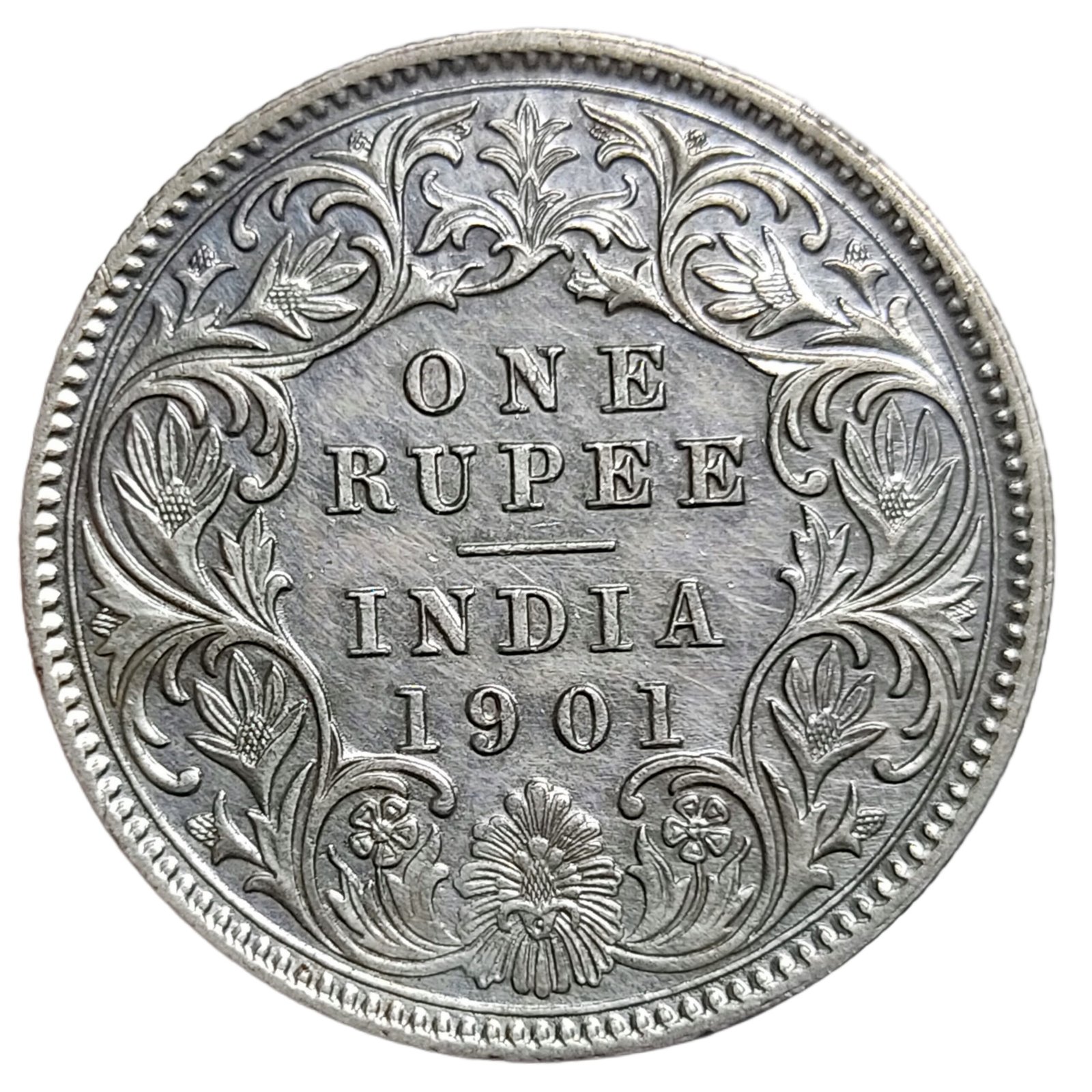 Victoria Empress British Empire Silver 1 Rupee 1901 Coin Weight 11.66 grm Diameter 30.05 mm