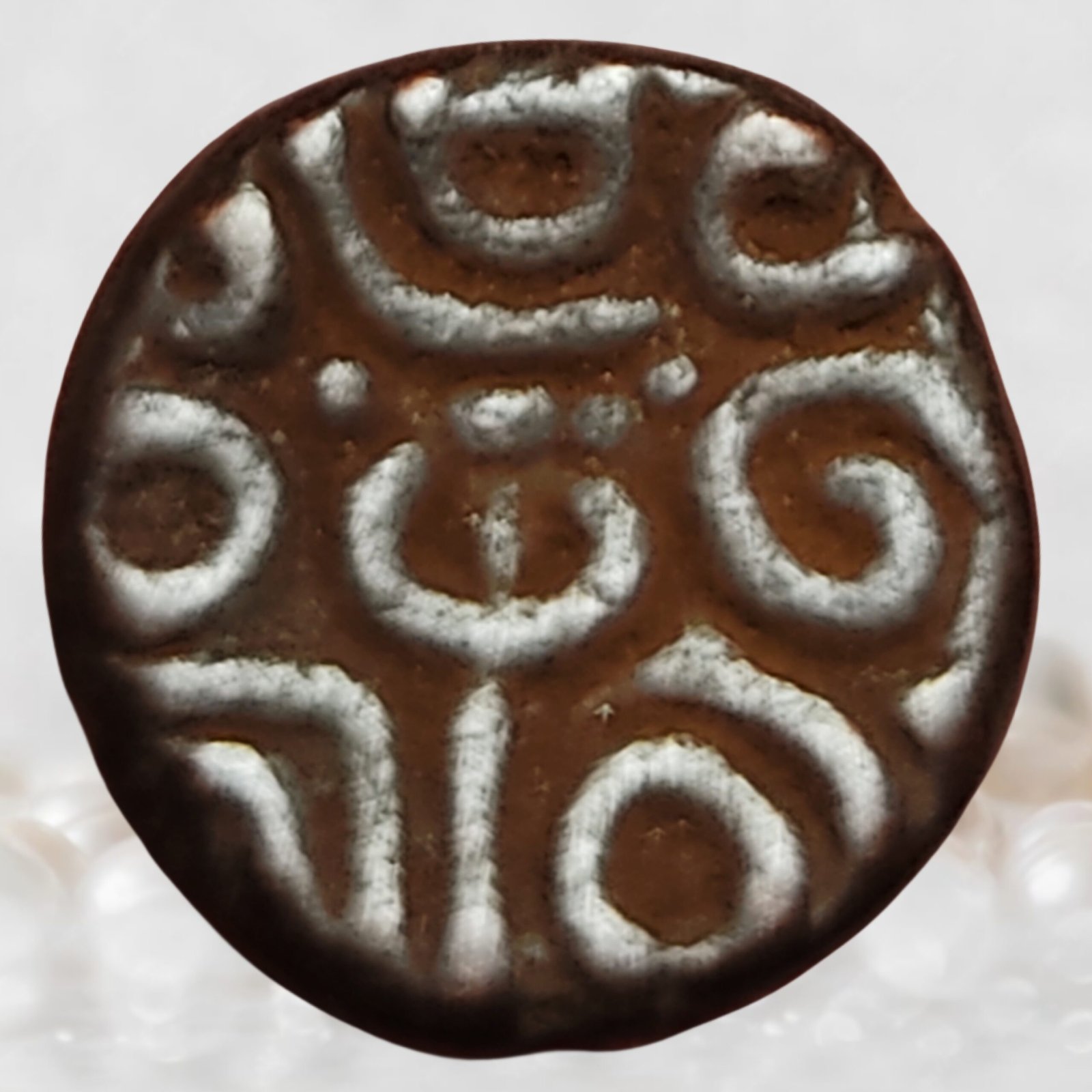 Vijayanagara Empire, Tuluva dynasty, Krishna Deva Raya, 1509-1529 CE, Denomination: 1 Kasu (1/60 of a Pagoda), Metal: Copper, Weight: 2.15 grams, Diameter: 12 mm, References: Numista N# 87737, about very fine, very scarce.